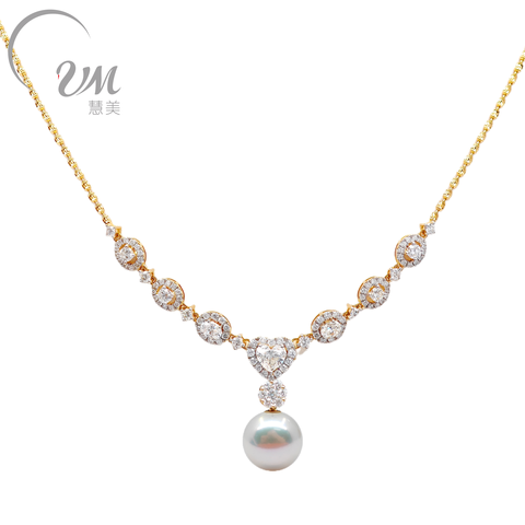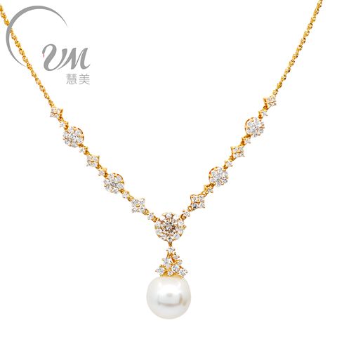 UM Jewelry Collar De Oro Sólido de 18 quilates con diamantes naturales y perlas Unisex Daily Memorial and Party Set al por mayor