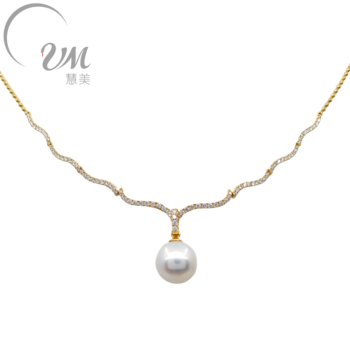 תליון תכשיטים, שרשרת זהב 18 קראט עם יהלום טבעי ופנינה יוניסקס ואזכרה סט מסיבה סיטונאית